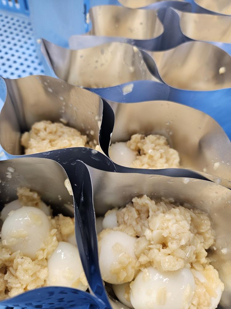 エビではなく、うずらが入っており、甲殻アレルギーの方でも食べることができる商品。